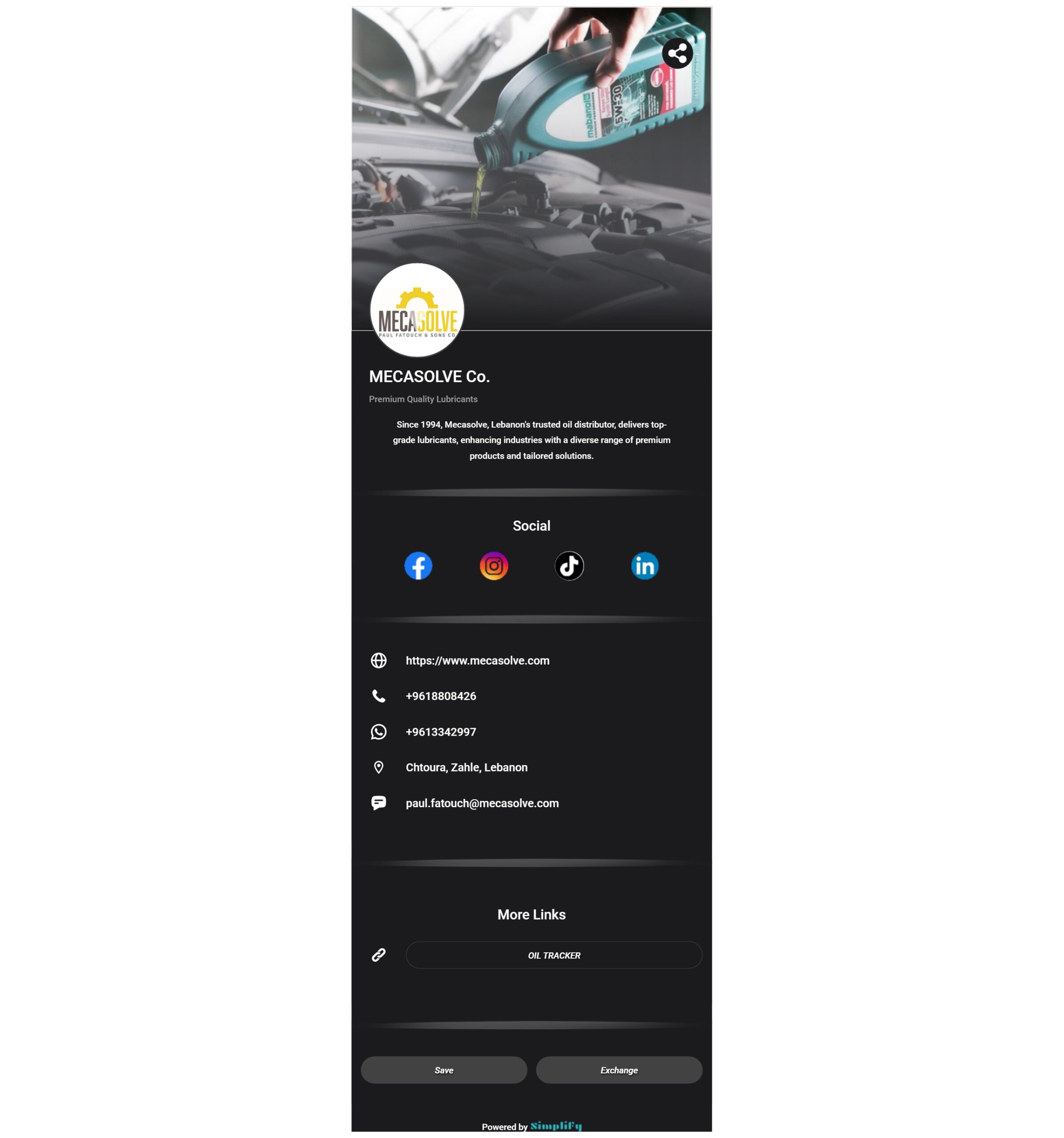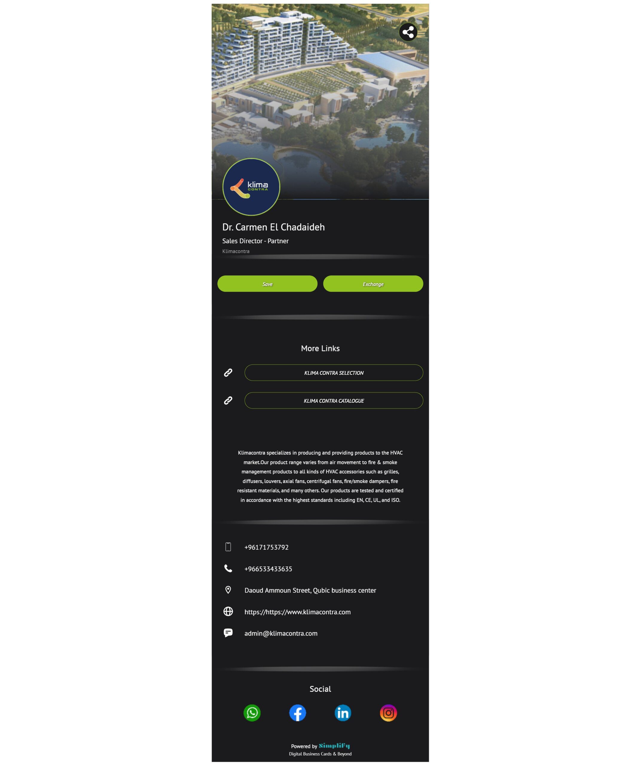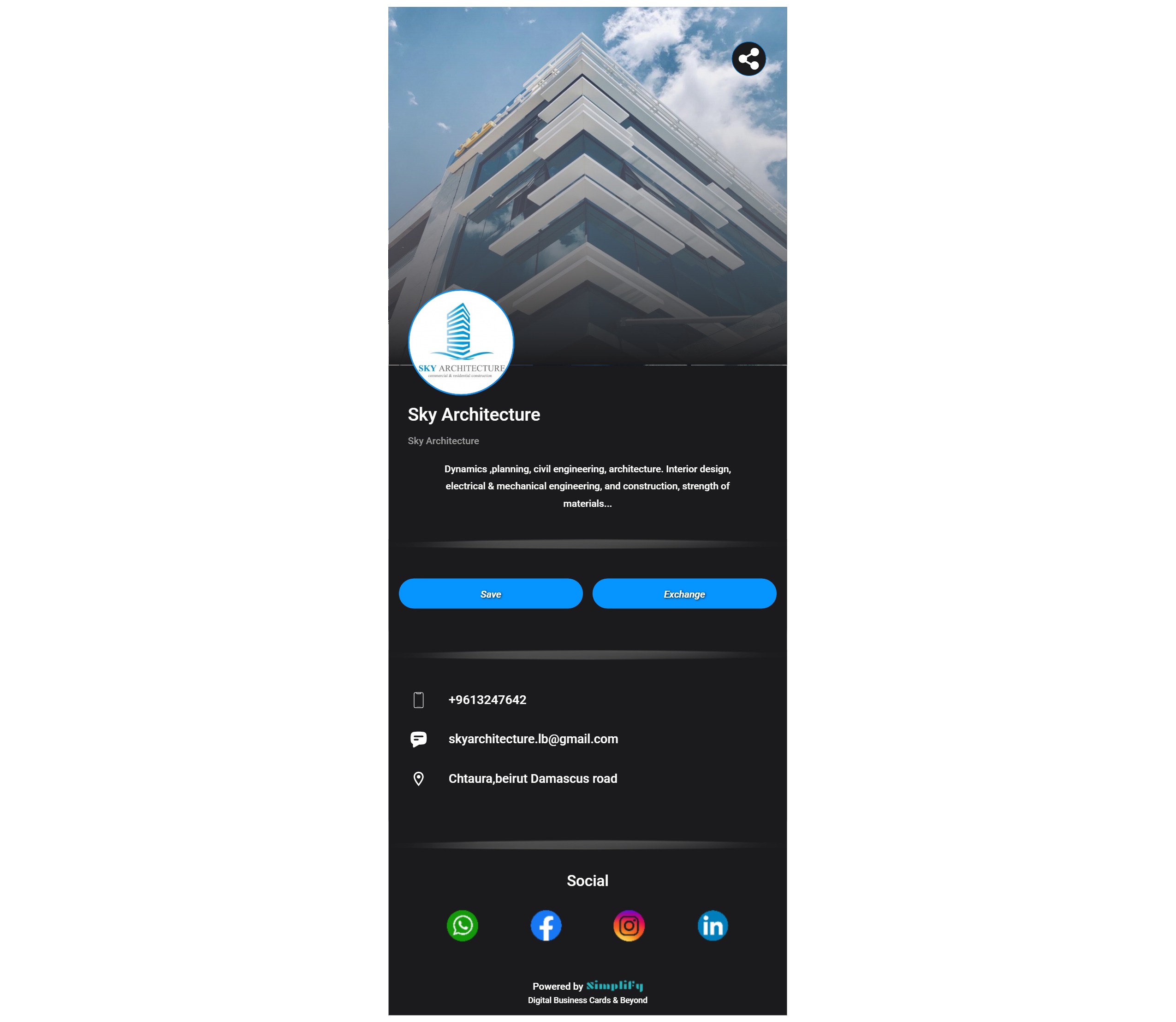 Share your profile link or QR code directly from the Simplify Digital Business Card App